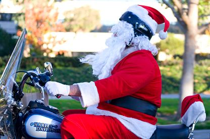Well you probably know what my day job is. I love the feel of the wind pushing my beard back around my neck. Riding the cycle is just about as close as I can get to taking the sleigh out one day a year.